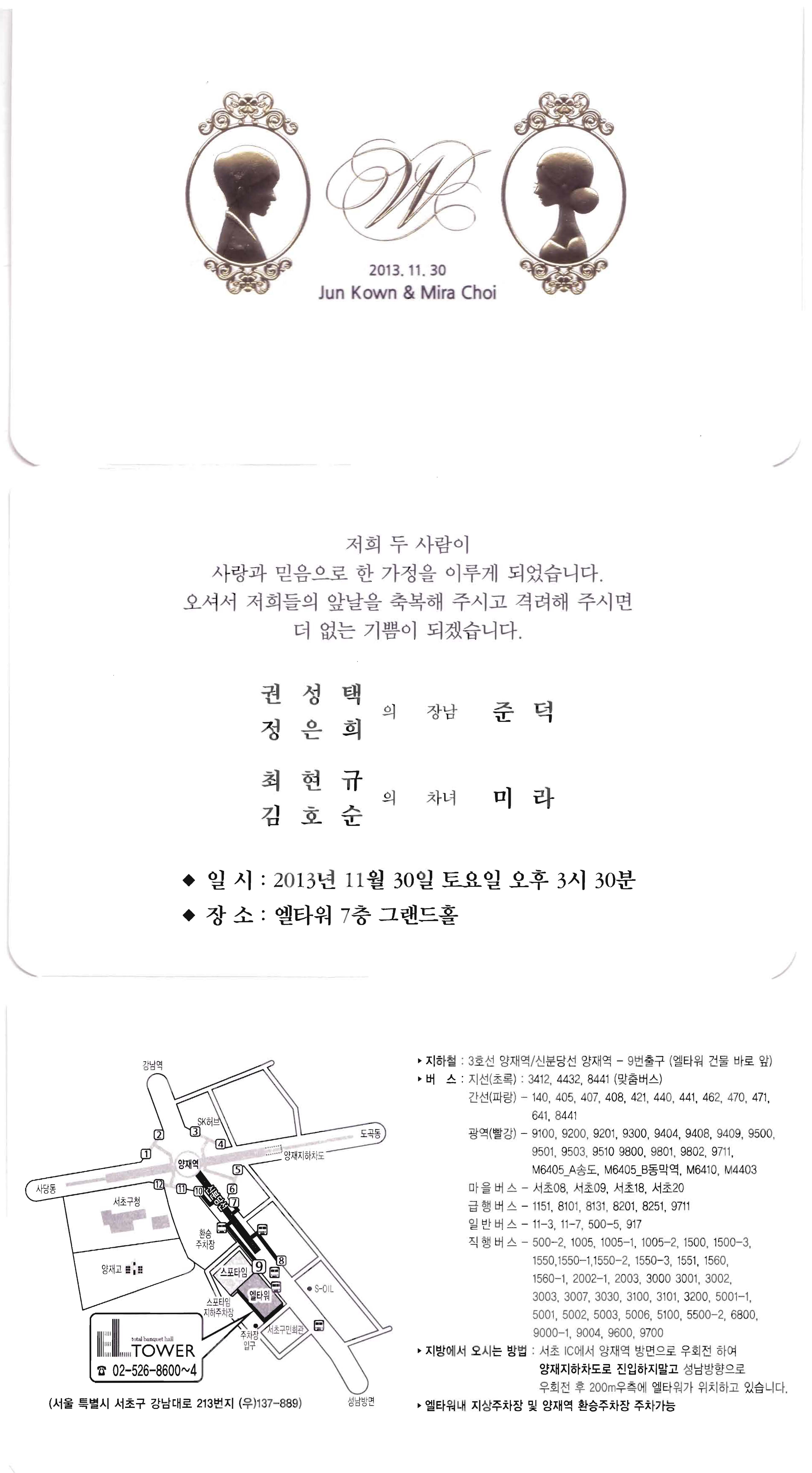 권성택 전임 회장님의 장남 준덕씨의 결혼식이 아래와 같이 있사오니,