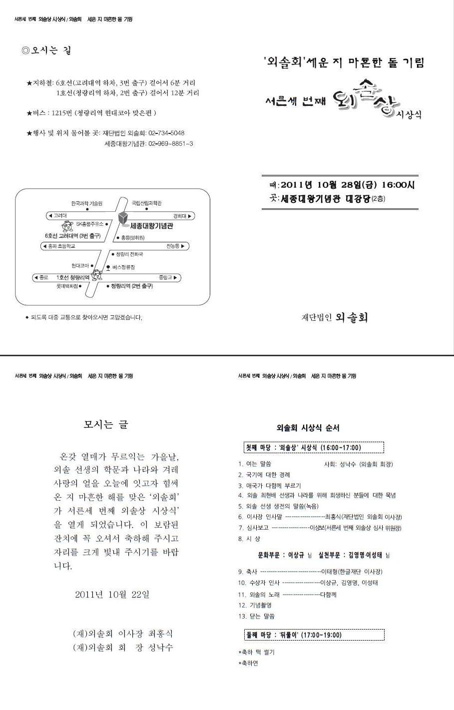 외솔 최현배 선생의 학덕을 기리고 나라사랑 정신을 널리 펼칠 수 있도록 각별한 관심과 참석을 부탁드립니다.